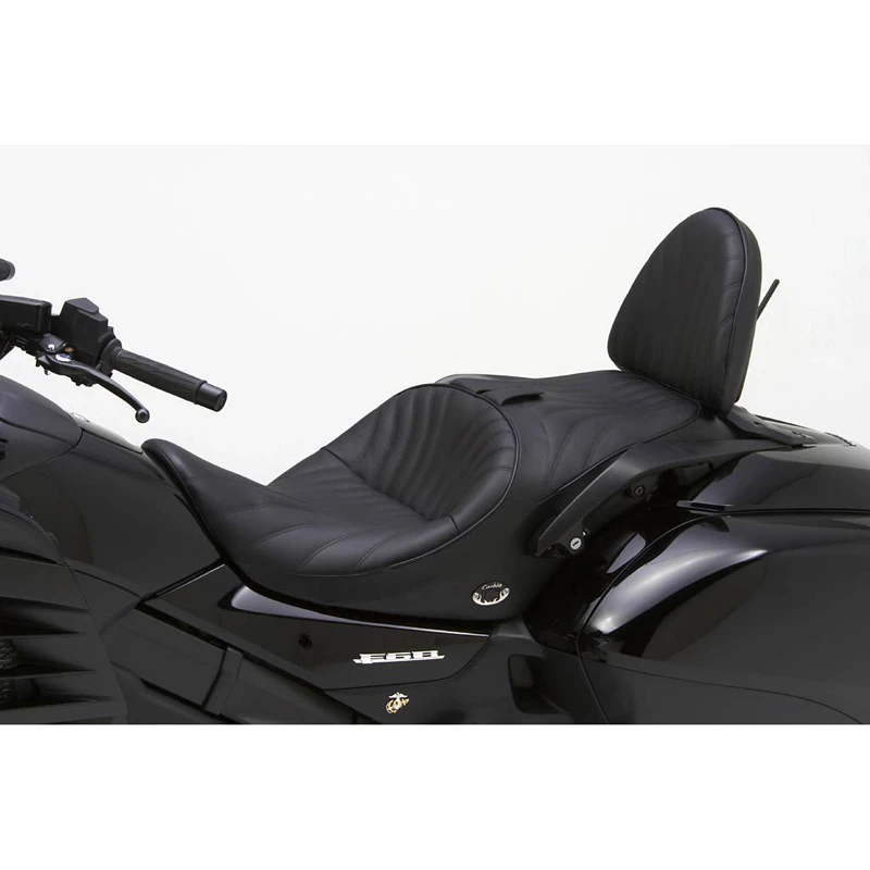 - Corbin Dual Touring saddle for Honda Gold Wing F6B shown with coordinated passenger backrest pad.