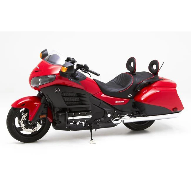 - Corbin Dual Touring saddle for Honda Gold Wing F6B shown with coordinated passenger backrest pad.