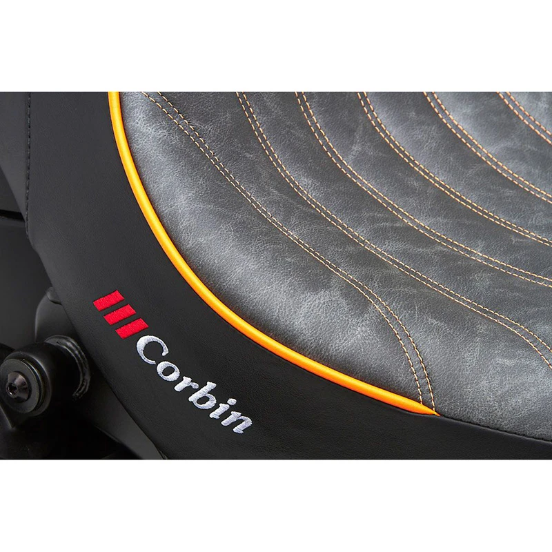 - Don’t forget that in order to carry passengers, you will need to arrange for a set of passenger footpegs. The Corbin saddle does NOT include footpegs.