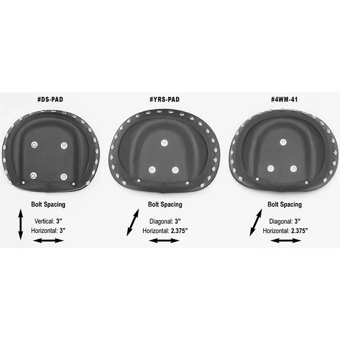 - Compare the bolt pattern of your sissy bar to the bolt pattern shown for each of the pads to assure proper bolt alignment.