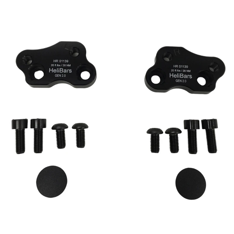 - Heli Tour performance handlebar relocation adapters moves the factory bars into a more comfortable position by reducing reach.