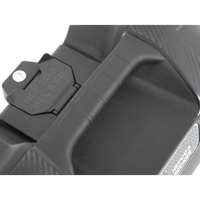 These Orbit cases are made of high-impact UV-resistant plastic and are 100% waterproof thanks in part to a form fitted rubber seal along the case’s seam. A new all-in-one lock concept allows the lid latch and locking mechanism to be integrated as one system. The Orbit features a robust appearance thanks to a carbon look pattern unique to Hepco & Becker, along with a fresh 3D Hepco & Becker logo.