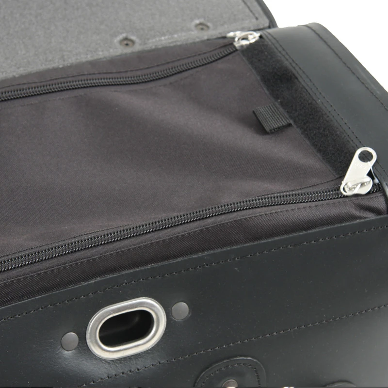 The mounting system for these bags is available in either the C-Bow version being Buffalo Custom (620.235) or Big Buffalo Custom (620.255). The C-Bow consists of a very discrete C shaped mounting plate that accepts the Street soft bag and Leather bags. The leather bag holder is a smaller version of the trademark mounting system that accepts all leather bags called the Leather bag holder. Buffalo Custom bags (620.205) and Big Buffalo Custom bags (620.245) will fit this system.