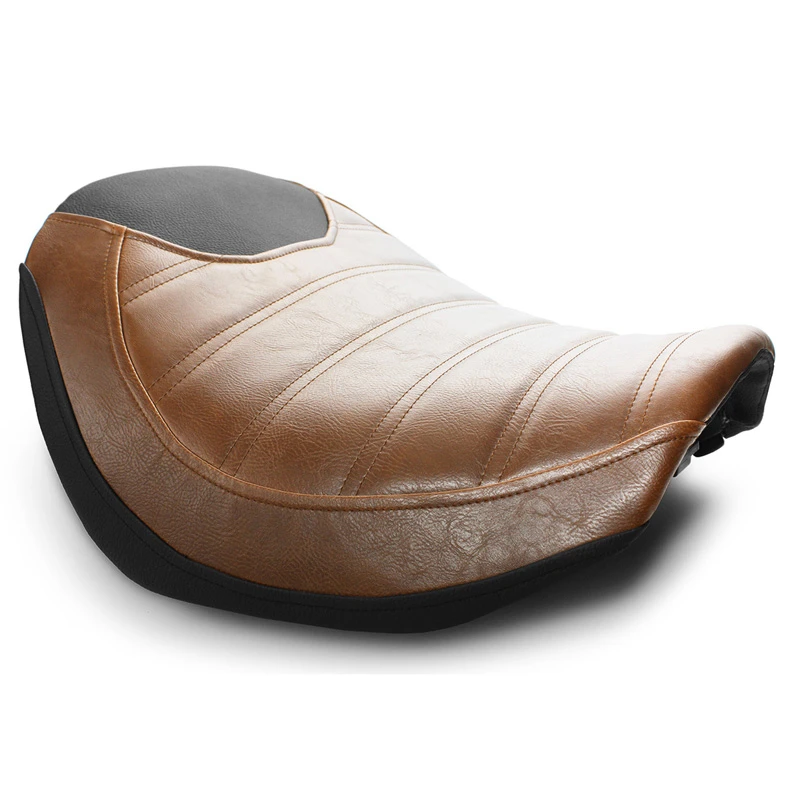 The Boulevard M90 Sport Cruiser seat cover features our latest vintage style fabric available in dark brown, brown, and black. This leather look material is made with high quality vinyl and features signs of distress, which really brings out the vintage feel. Modern ribbed stitching is inspired by the fins of the V-twin and the swooping lines compliment the lines of your motorcycle. Ride in Style with Luimoto.