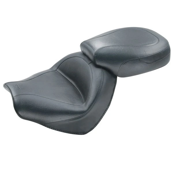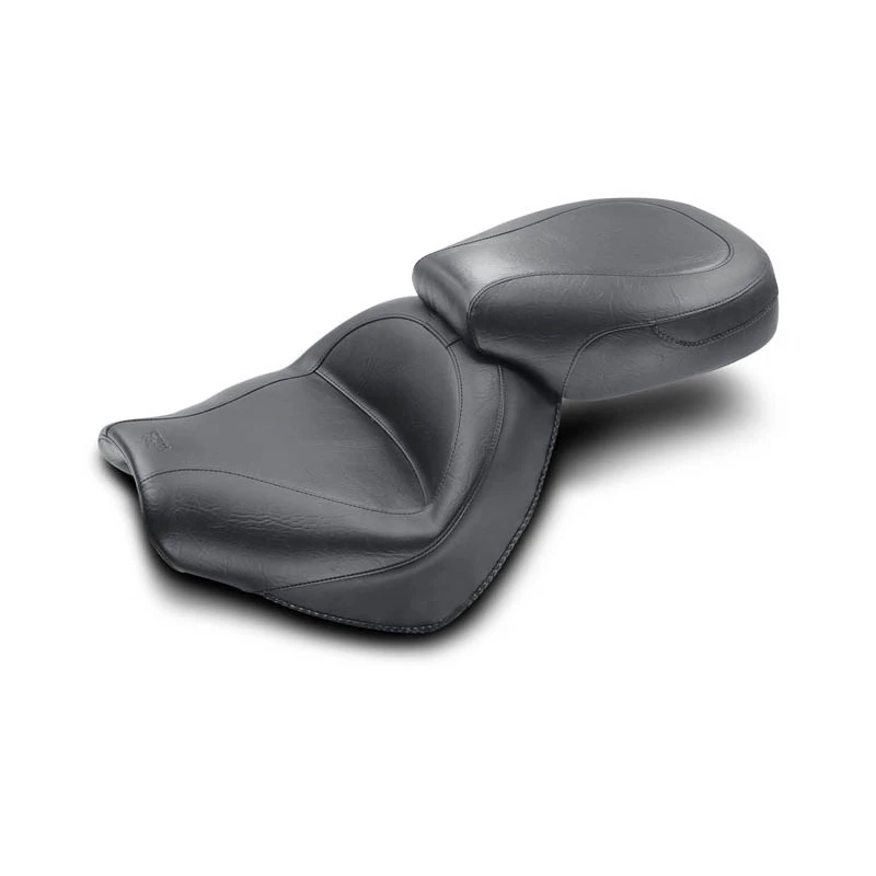 The deeply pocketed 17″ wide driver seat sits you at the ideal cruising angle. The 12.5″ wide passenger seat utilizes Mustang’s unique internal steel support wings. All styles feature a skirt with braided edge trim. The driver’s back is well supported by the nose of the passenger seat that extends forward to create a full 9″ backrest.
