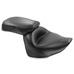 The edges of all baseplates have a steel reinforced, impact absorbing vinyl edge trim to protect the seat cover. Polyurethane bumpers are strategically located and riveted to the baseplate to prevent it from touching the frame and fender and to minimize vibration. Mustang’s unique internal support wings are added to the baseplate to provide maximum driver and passenger comfort. These wings support the entire width of the molded foam. This feature is found on most Mustang touring seats. Bumpers will not crack with age and are ozone protected. Solos with built-in driver backrests have the receiver welded and reinforced to the baseplate for strength. Foam surrounds the hardware to provide maximum comfort.