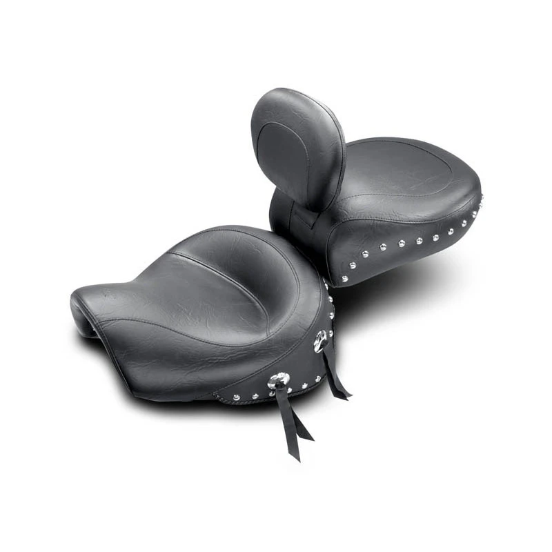This Mustang 79233 Two Piece Wide Touring Seat with Driver Backrest, Studs is made specifically for Kawasaki Nomad 1500 (1999-2004) & Fuel-Injected Classic (1996-2008)