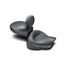 Sold as a complete three-piece set including solo, passenger seat and removable driver backrest. A 16″ wide front solo seat sets the driver back for the ideal cruising angle. Back support is provided by the nose of the matching passenger seat that extends forward to create a full 8″ high backrest. The passenger sits comfortably in a 13″ wide bucket that is supported by internal steel support wings to prevent sagging around the edges. Chrome mounting brackets are included. The driver backrest mechanism is built directly into the passenger seat–not into the solo. Note: Mustang seats will fit with Cobra brand Luggage Racks or Kawasaki Fire & Steelâ„¢ #K53020-066C if rear seat tab is mounted on top of luggage rack. The built-in driver backrest offers more features than any other backrest on the market.