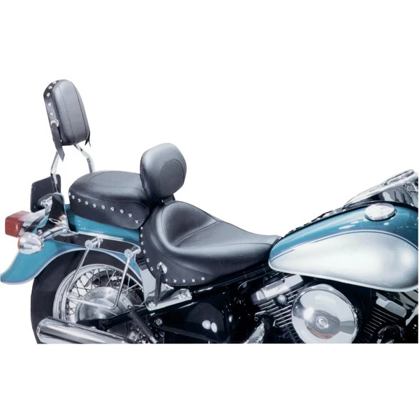 This Mustang 79250 Two Piece Wide Touring Seat with Driver Backrest, Studs is made specifically for Kawasaki Vulcan 800 (1995-2005) and Classic (1996-2005)