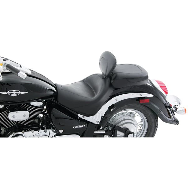 This Mustang 79283 Wide Touring Seat with Driver Backrest, Studs is made specifically for Suzuki 800 Volusia (2001-2004) and C50 and C50T (2005-2008)