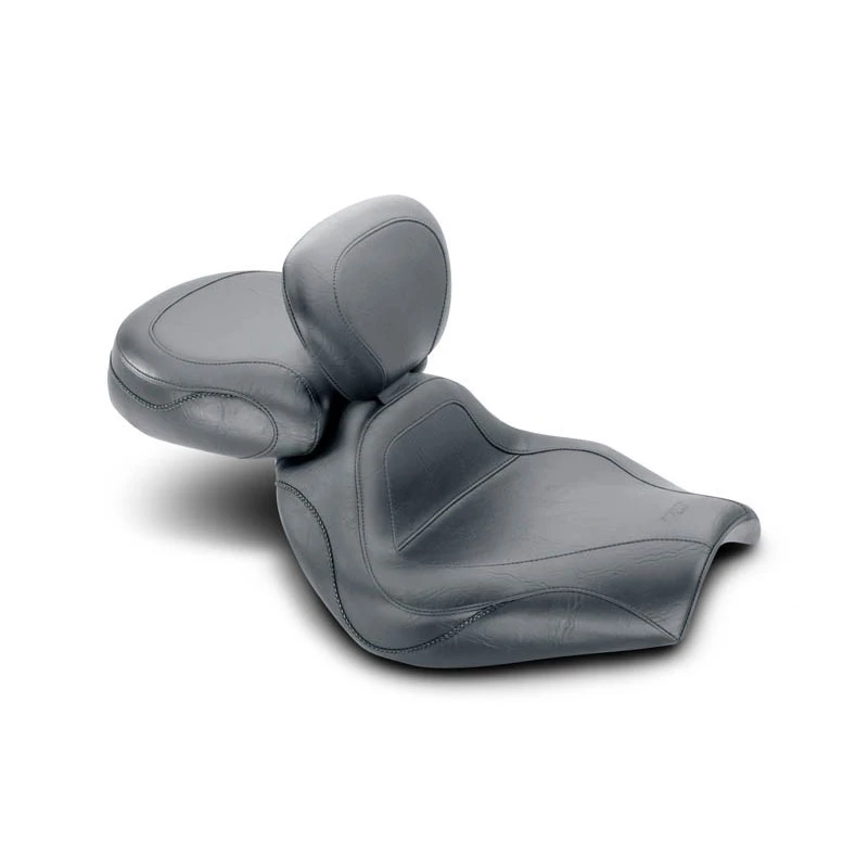 The deeply pocketed 15.5″ wide driver seat sits you at the ideal cruising angle. The 11″ wide passenger seat utilizes Mustang’s unique internal steel support wings. The built-in driver backrest offers more features than any other backrest on the market.