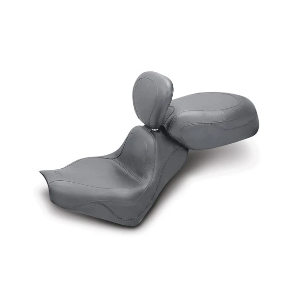 The deeply pocketed 16″ wide driver seat sits you at the ideal cruising angle. The 12.5″ wide passenger seat utilizes Mustang’s unique internal steel support wings. All styles feature a skirt with braided edge trim. The built-in driver backrest offers more features than any other backrest on the market.