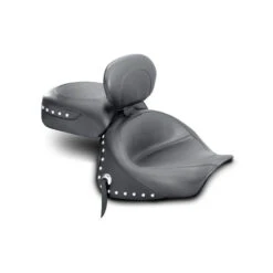 Sold as a complete set that includes the two-piece seat and removable driver backrest. Mustang’s seats feature a 16″ wide deeply pocketed driver bucket that sits you at the ideal cruising angle. The entire 13″ width of the comfortable rear seat is fully supported by Mustang’s unique internal steel wings–no sagging on the edges, no more passenger complaints. Built on a marine-grade fiberglass baseplate, the two-piece seat mounts just like stock. Mustang’s touring seat is available with or without a built-in driver backrest and is also sold with studs and conchos. The built-in driver backrest offers more features than any other backrest on the market.
