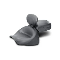 Sold as a complete set that includes the two-piece seat and removable driver backrest. Mustang’s seats feature a 16″ wide deeply pocketed driver bucket that sits you at the ideal cruising angle. The entire 13″ width of the comfortable rear seat is fully supported by Mustang’s unique internal steel wings–no sagging on the edges, no more passenger complaints. Built on a marine-grade fiberglass baseplate, the two-piece seat mounts just like stock. Mustang’s touring seat is available with or without a built-in driver backrest and is also sold with studs and conchos. The built-in driver backrest offers more features than any other backrest on the market.