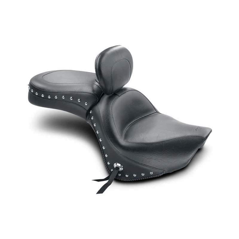 The deeply pocketed 16″ wide driver seat sits you at the ideal cruising angle. The 12.5″ wide passenger seat utilizes Mustang’s unique internal steel support wings. The built-in driver backrest offers more features than any other backrest on the market.