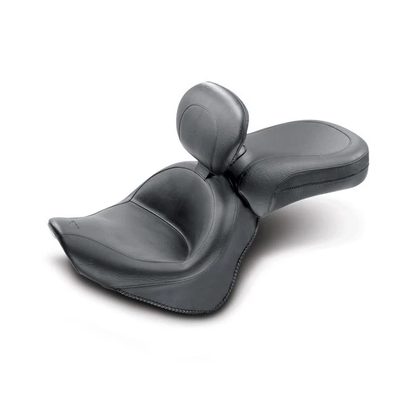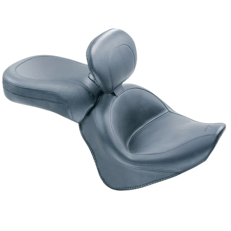 Sold as a complete three-piece set including solo, removable driver backrest and matching passenger seat. Mustang’s deeply pocketed driver seat is a full 16″ wide and sits you at the ideal cruising angle. The passenger sits comfortably in a 12.5″ wide bucket that utilizes Mustang’s unique internal steel support wings to keep the entire width of the molded foam supported. The built-in driver backrest offers more features than any other backrest on the market.