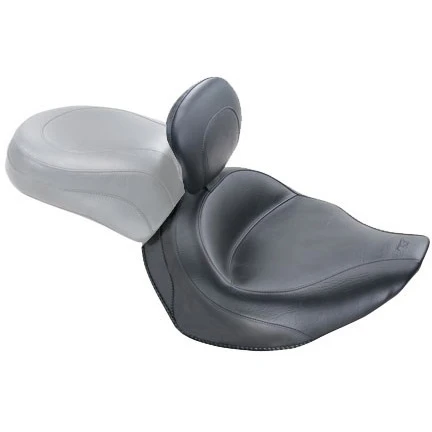 Riders and passengers will definitely find the comfort zone in one of Mustang’s four seat styles for the Roadliner and Stratoliner. The deeply pocketed 17.5″ wide front bucket sits the driver at the ideal cruising angle. The built-in driver backrest offers more features than any other backrest on the market. The passenger seat features Mustang’s unique internal steel support wings to keep the entire width of the molded foam supported and is available in two widths: 12″ wide or 10″ wide.