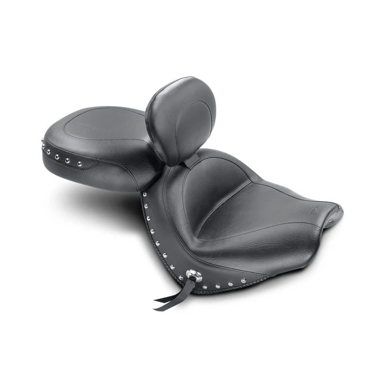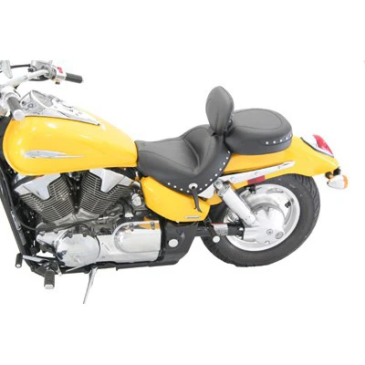 This Mustang 79560 Two Piece Wide Touring Seat with Backrest, Studs is made specifically for Honda VTX 1300C (2004-2009)
