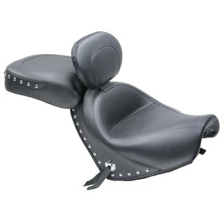 Mustang’s popular touring seat features several design improvements over the stock seat. The 16″ wide deeply pocketed driver bucket sits you at the ideal cruising angle. The entire 12″ width of the comfortable passenger seat is fully supported by Mustang’s unique internal steel support wings–no sagging on the edges, no more passenger complaints. Sold as a complete three-piece set including solo, removable driver backrest and matching passenger seat. The built-in driver backrest offers more features than any other backrest on the market. Will not work with trike conversion.