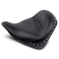 The edges of all baseplates have a steel reinforced, impact absorbing vinyl edge trim to protect the seat cover. Polyurethane bumpers are strategically located and riveted to the baseplate to prevent it from touching the frame and fender and to minimize vibration. Mustang’s unique internal support wings are added to the baseplate to provide maximum driver and passenger comfort. These wings support the entire width of the molded foam. This feature is found on most Mustang touring seats. Bumpers will not crack with age and are ozone protected. Solos with built-in driver backrests have the receiver welded and reinforced to the baseplate for strength. Foam surrounds the hardware to provide maximum comfort.