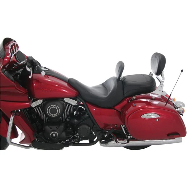 This Mustang 79686 One Piece Wide Vintage Touring Seat with Backrest is made specifically for Kawasaki Vaquero (2011-current)