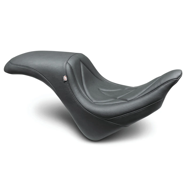 - 12” wide hand-formed driver bucket sits the rider further “into” the motorcycle for improved comfort and control