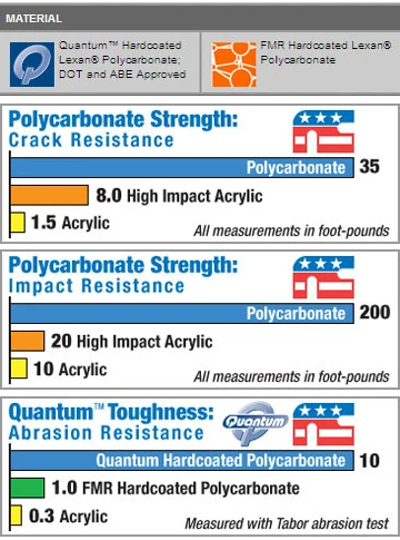 - Constructed from durable 4.0mm hardcoated polycarbonate material.