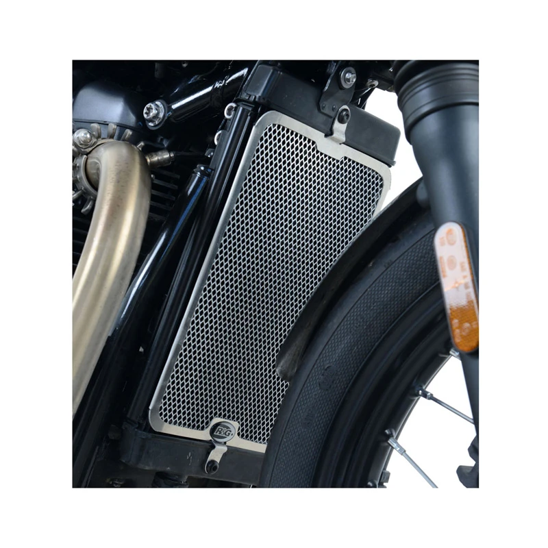 The R&G radiator guard for your Triumph Bonneville Bobber provides exceptional protection for the rad. Lightweight yet strong aluminum construction deflects bugs, stones and other debris that can damage fragile cooling fins and even cause a puncture. This essential radiator guard is an excellent investment on any motorcycle with sticky tires. Each unit is powder coated for an enhanced appearance that also improves durability and corrosion resistance. Installation is straightforward using the factory mounting locations without modifications.