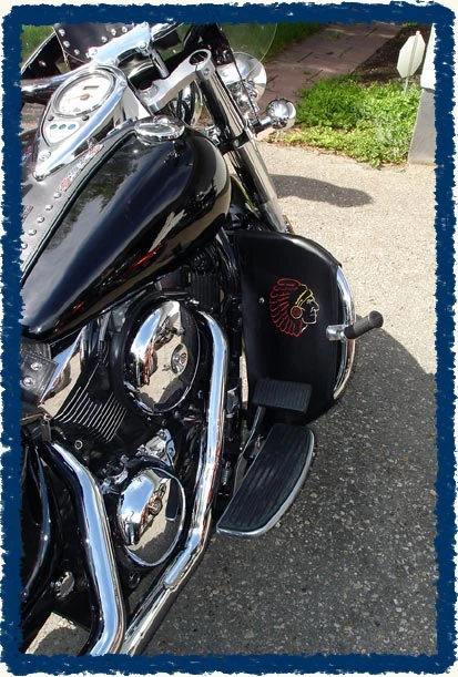 - Our chaps will perfectly fit your engine guard which is sold separately.