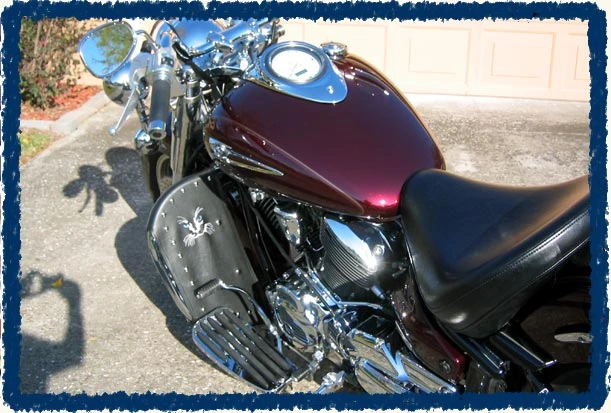 - Our chaps will perfectly fit your engine guard which is sold separately.