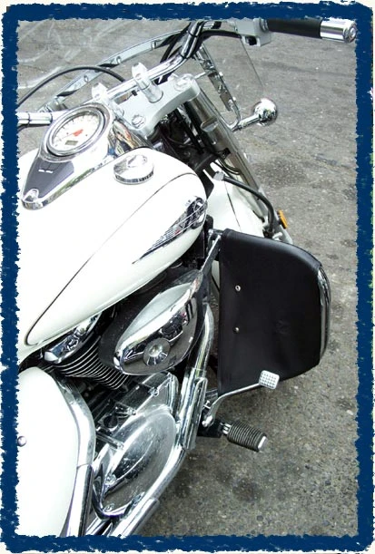 - Our chaps will perfectly fit your engine guard which is sold separately.
