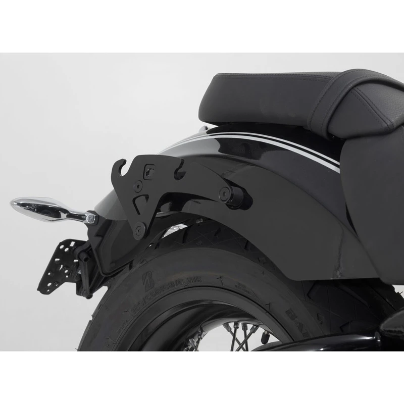 The bike-specific bag carrier can be easily and quickly mounted on to original attachment points on the fender strut. The quick lock system allows to be attached and removed in just a few easy hand movements, without the driver foregoing reliable bag fastening.